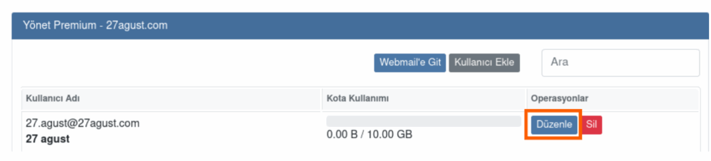 - Parolasını sıfırlamak istediğiniz kullanıcıyı bulun ve “Düzenle” butonuna basın.