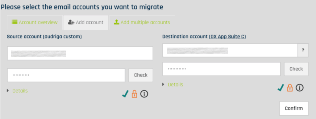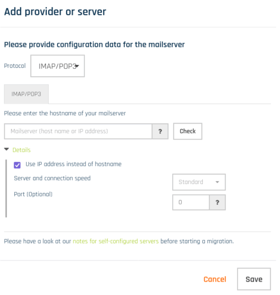 - Kaynak hesap: Taşımak istediğiniz eski e-posta sağlayıcısındaki hesabın kullanıcı adı/parolası.
