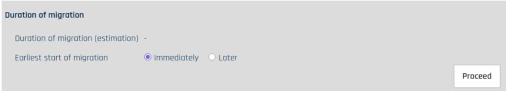 10) Migration süresi seçimi yapıldıktan sonra “Proceed” seçeneğine tıklanır.