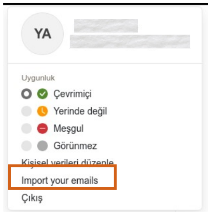 1) Webmail hesabına giriş yapıldıktan sonra sağ üst menüden “Import your emails” seçeneği seçilir.