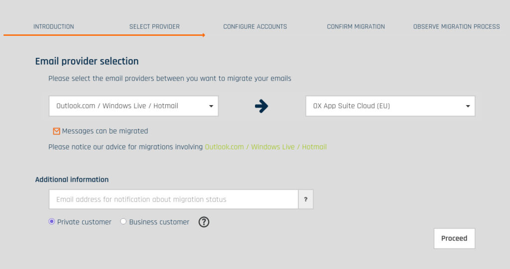 audriga Migration Service, mevcut posta kutularınızdaki içerikleri yeni sağlayıcınıza kolay, hızlı ve güvenli şekilde taşır. Yapılandırma, herhangi bir yazılım kurmadan self-servis web arayüzü üzerinden yapılır; sistem, e-posta istemcinizin bağlandığı gibi kaynak posta kutularına bağlanır ve e-postaları, ekleri, klasörleri; desteklenen durumlarda kişileri, randevuları ve görevleri hedef hesaba kopyalar. Kaynaktaki veriler silinmez/değiştirilmez. Taşıma üç basit adımda kurulur ve durum çevrimiçi izlenir. Büyük/karmaşık taşımalar için daha ileri destek gerekirse audriga ile iletişime geçebilirsiniz.