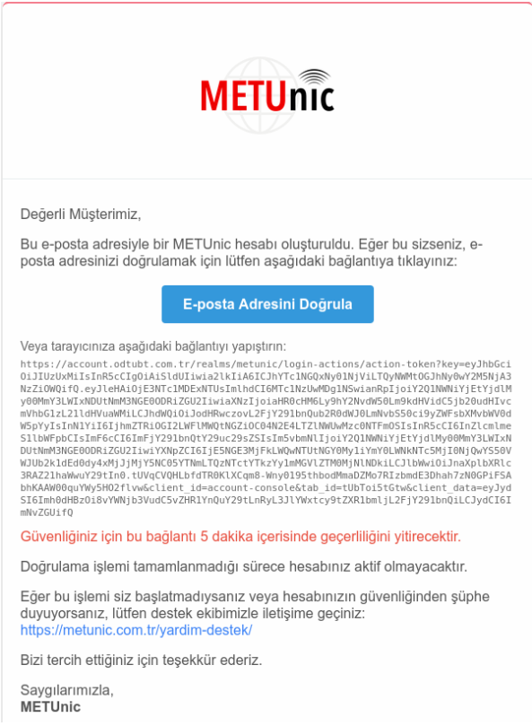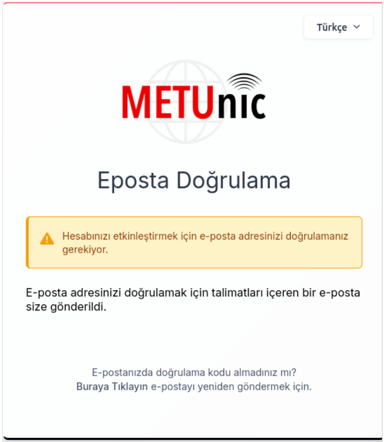 1. E-posta adresinize doğrulama maili iletilecek ve aşağıdaki bilgilendirme ekranı sayfada görünecektir.